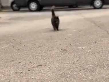 ネコがこっちにやってくる。変わった柄の尻尾ですね → 10%だけ茶トラな猫はこちらです…