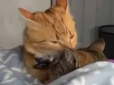 ネコが同居猫の顔を毛づくろいしていた。仲良くペロペロ♪ → こんな顔になった…