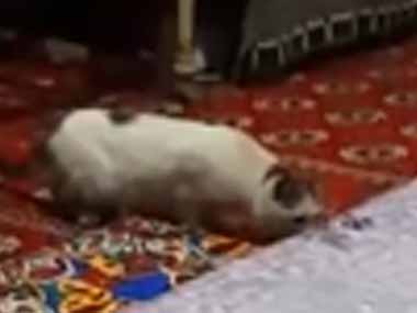 ネコが床の敷物を眺めていた。じ~・・・ → こうなる…