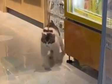店の中にいる1匹の猫さん。