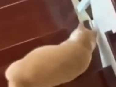 ネコが私の足元にやってきた。一緒に階段をおりるにゃ♪ → いつもこうなります…