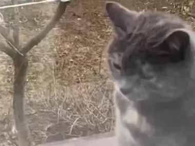 ネコが窓の外にいた。もう1匹はちょっと離れた木の上にいる → こうなる…