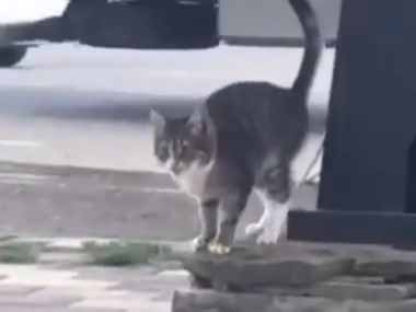 ネコが道端にいたので呼んでみた。芸を見せるからエサちょうだい! → 猫はこうする…
