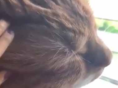ネコが顔を撫でられていた。気持ちよさそうだ → でもなんかこの猫、デカくね?…