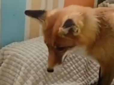 ネコとキツネが仲良く遊んでいた。ソファの上でじゃれる → 猫はこうなっちゃう…