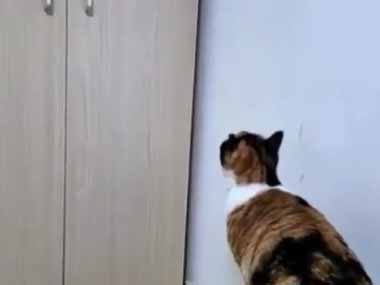 ネコの目の前にクローゼットあった。その上に飛び移る! → 猫はこうなる…