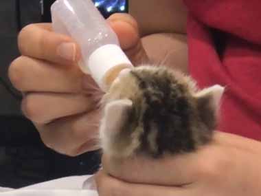 ネコの赤ちゃんにミルクをあげる。哺乳瓶をチュウチュウ♪ → 可愛い耳はこうなります…