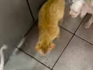 ネコはそんな気分じゃない。でも子犬たちは遊びたかった → 猫はこうなっちゃう…