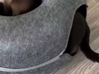 ネコ用のドーナツベッドがあった。中はどうなっているのかな? → チャックを開けてみたら…