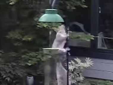 リスが庭にある鳥の餌を狙っていた。滑って失敗するんだろうな → そんなふうに考えていた時期が俺にもありました…
