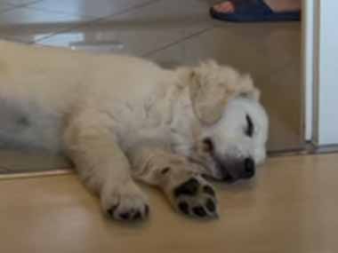 子イヌが床でスヤスヤ寝ていた。飼い主がいろんな物で音を出してみる → 反応したのはこれでした…