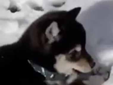 子イヌが庭で遊んでいた。はじめての雪はどうですか? → 生後2ヶ月の子犬はこうなった…