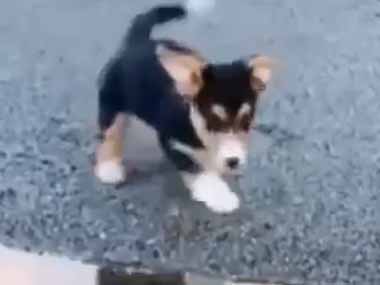 勇気を振り絞る子犬は