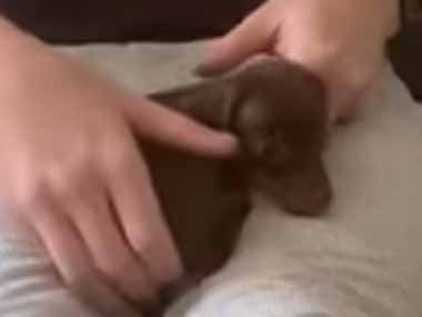 子イヌが私の膝の上にいた。ベッドにそっと移す → こうなる…
