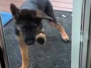 子イヌが窓の外にいた。中に入りたいよぉ! → 子犬、勘違いです…