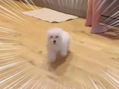 子イヌが飼い主の足元にいた。突然どうしたの? → 子犬はこうなった…
