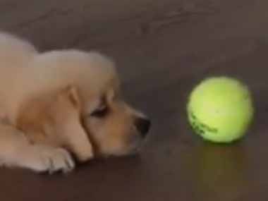 子イヌのボール遊びはちょっとぐうたらです。成長したらどうなるの? → こうなります…