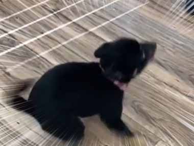 子イヌの前で飼い主が手を叩いてみる。ぷるぷるブンブン♪ → 子犬はこうなっちゃう…