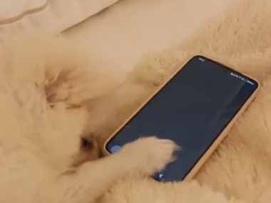 子イヌの隣にスマホが置いてあった。スワイプ♪ → ちょぴり使いこなしている件…