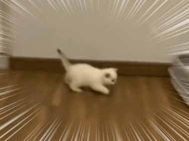 子ネコがもう1匹の子猫に向かって走り出した。ケンカが始まるの? → こうなります…
