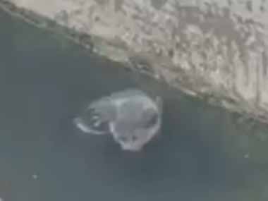 子ネコが水路に落ちて鳴いていた。高くて上から人の手が届かない → ザルで救出してみた…