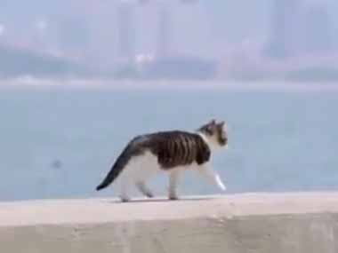 子ネコが海辺を歩いている。とことことこ♪ → 猫がいる風景にほっこりです…