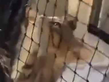 子ネコが網の向こうにいた。脱走にゃ~! → 賢い子猫はファスナーをこうします…