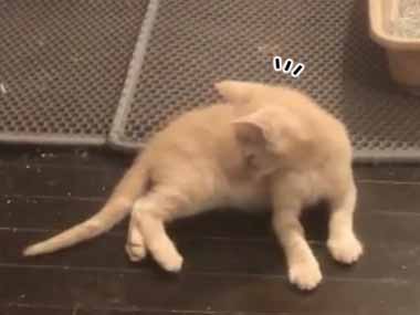 子ネコが自分の「しっぽ」を発見した → とってもクルクルです…