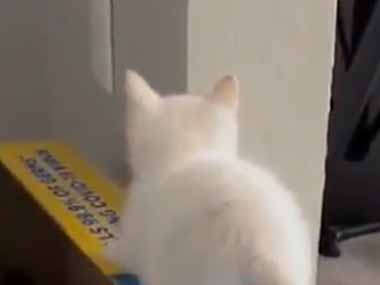 箱の上に飛び乗った白子猫ちゃん。