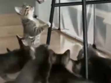 子ネコたちが椅子の下に集まってきた。母猫はちょっと休みたい → こうなった…