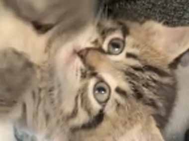 子ネコとオモチャで遊んでいた。毛玉、活動限界です! → こうなっちゃう…