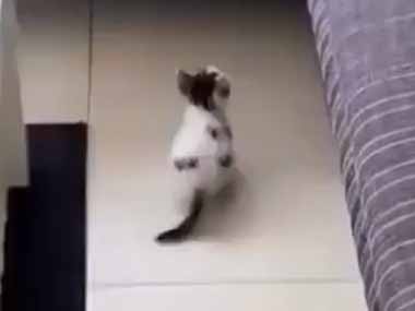 子猫がソファを見上げていた。上にのぼりたいようだ → すると…