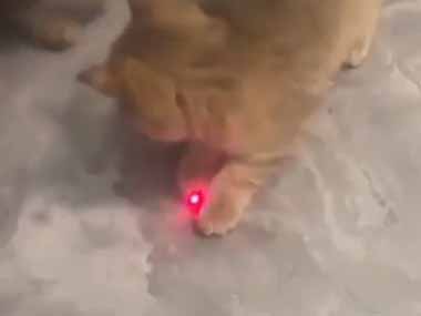 子猫たちとレーザーポインターで遊んでいた。ひょいひょい♪ → 1匹はこうなります…