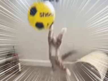 子猫とサッカーボールで遊んでいみた。バンザイにゃ! → この躍動感です…
