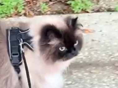 家猫だってたまには外を散歩したい。今どんな気持ち? → シッポを見ればわかります…
