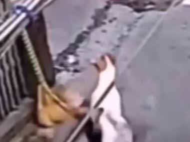 小さなイヌに大きな犬が近づいた。負けないぞぉ! → 犬、ホウキで応戦する…