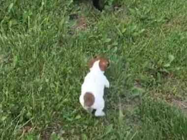 小さな子イヌが庭で遊びだす。そこには黒猫がいた → 新しい友達を見つけたようです…