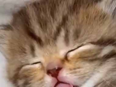 小さな子ネコがすやすや眠っていた。んべ~♪ → ずっとお口はこんな感じ…
