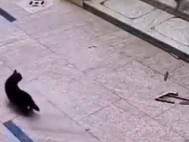 犬が猫にケンカを仕掛ける。やったるぞぉ! → すぐにこうなっちゃう…