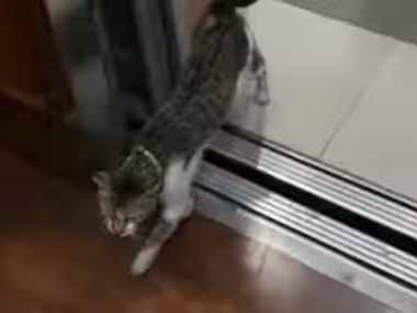 猫がエレベーターに乗ってきた。ボタン押してにゃ♪ → 降りるフロアは分かっているようです…