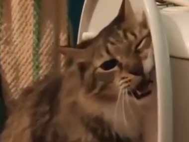 猫がトイレで遊んでいた。フタをあぐあぐ! → こうなっちゃう…