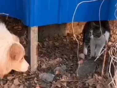 野良ネコにうちの犬がそっと近づいて行く。こんにちは~ → こうなった…