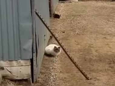 1匹のネコが納屋の前にいた。ちょっと呼びかけてみる → こうなった…