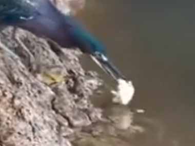 1羽の鳥が池のほとりにやってきた。パンを咥えている → こうします…