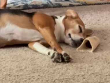 2匹のイヌが一緒に遊んでいた。でも1匹は疲れて寝てしまう → もう1匹はこうなります…