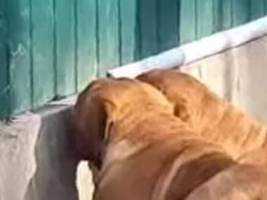 2匹のイヌが塀の隙間から「のぞき」をしていた。ずっと何を見ているの? → これでした…
