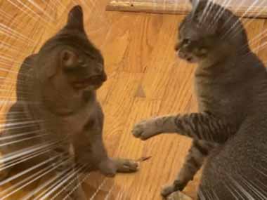 2匹のネコがじゃれ合っていた。ちょっとヒートアップ → シンクロ率、上がります…