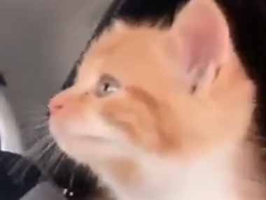 2匹の子ネコが車に乗っていた。会話をしているのかな? → 可愛いおしゃべりはこちらです…
