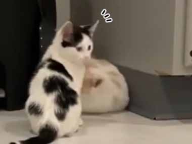 2匹の子ネコが遊んでいた。床にカリカリを投げてみる → 子猫、この動きです…